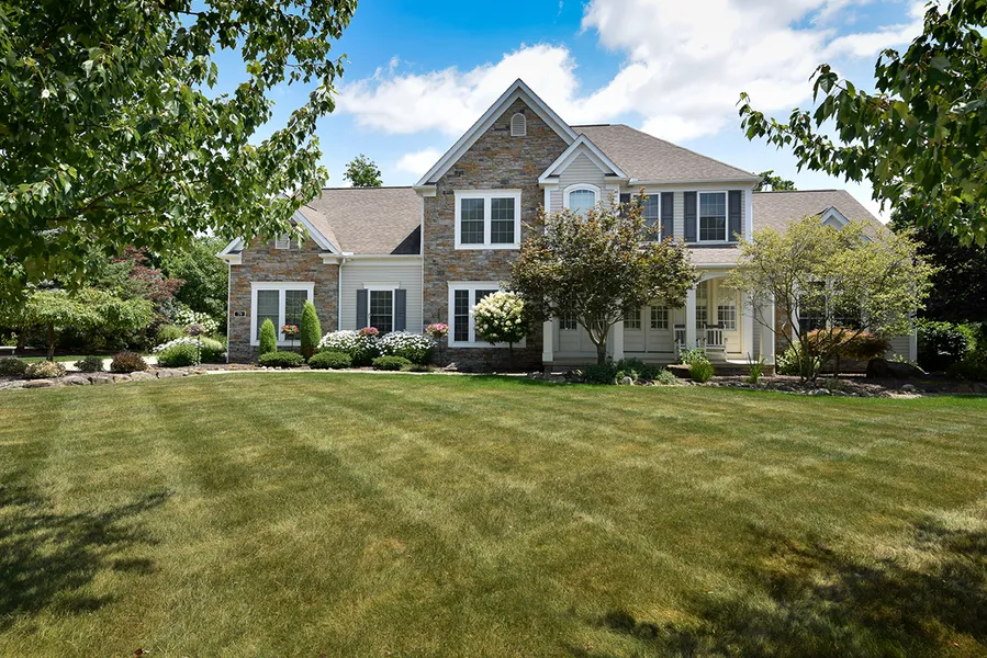 Nestled in the heart of the community this charming home is where warmth meets joy. A front porch surrounded with lovely landscaping, a perfect spot for that morning coffee. Imagine family gatherings in your private backyard. With your Stonehenge-like fire pit area that backs up to conservation land. Sitting on the back deck enjoying your summer barbecue or relaxing in your hot tub. This home is truly made for both entertaining and everyday living. This home presents attention to detail throughout. Arched doorways, white panel doors, wide baseboards and crown molding. Just to name a few details. The saying is the heart of the home is the Kitchen and if you enjoy cooking this is the kitchen. With maple cabinets, granite counter tops, black and stainless steel appliances and motion control hands free faucet. Imagine family gatherings with this open floor plan from the kitchen sun room and a vaulted great room with floor to ceiling stone fireplace. Upstairs has an impressive owners suite with 2 walk-in closets, dual sink area, soaking tub and a large shower. Two bedrooms have a Jack & Jill bathroom. Fourth bedroom has an ensuite. All rooms have walk-in closets. Recreation area offers bar with granite, full fridge. Full bathroom and possibly 5th bedroom with closet and egress windows. Extra room for workout area movie room. Welcome home to the outstanding Amish built custom home. This home could be your personal retreat from the world's hustle.