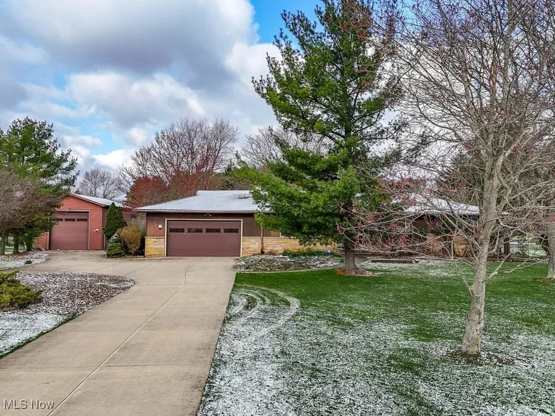 3 beautiful ACRES in north Medina and main level living - a rare opportunity for any DIY enthusiast or home owner! This home is a perfect fit for anyone searching for enough land to have an escape, plant gardens galore, have a large workshop or two and feel like you own a slice of country charm. This darling house has an open concept and tons of potential. Take note of the 20 x 36 pole garage and abundant paved parking space - AND a 2-car attached garage. The first floor has a family room with big windows looking out to the well-maintained lawn in front. There is a stone fireplace and recently updated LVP flooring. Kitchen looks out to the beautiful property and has a dining area by sliders to the deck. There are 3 bedrooms on the main floor. The primary bedroom has attached full bathroom. There is also full basement, plenty of ways to customize the space and make it yours, it's a blank canvas. Design a rec room, more bedrooms, office space, whatever you like. Or just hang out in the massive pole garage - perfect for any car or boat fanatic; with a concrete floor for easy storage. The backyard is fully fenced and includes an additional shed for all your outdoor landscaping needs. Public water, public sewer. Not an easy find, loaded with possibilities, solid bones, certainly worth a look! Prime location with easy access to 42 and all things Medina/Brunswick. Roof is new, under 5 years. Shower in the full bath in hall and LVP flooring in family room recently done. Modernize this serene retreat as you wish or simply move in and appreciate that there is still telephone on the wall - it adds a vintage touch!