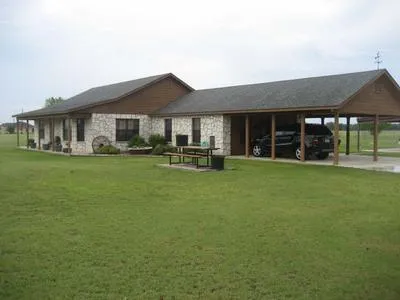 Cash to Seller or third party financing. Broker can assist in obtaining third party financing. Yancey water meter feeds home; Leona gravel well that feeds underground water system for sprinklers and traveling gun for irrigation; stock pond that can be filled from well water. Metal cattle pens; 576 sq. ft. shop/garage with covered shed; small storage sheds; 40’ x 60’ large metal enclosed barn with 3 roll up doors; 20’ x 60’ attached shed on one side of large barn; 40’ x 60’ horse barn with attached 12’ x 60’ shed; 800 sq. ft. carport/shed for vehicle parking; and an 8 year old, 3 bedroom, 2 bath rock and cedar home of approximately 2,700 sq. ft. with attached 500 sq. ft. carport. This property is fenced, cross fenced and planted in coastal Bermuda. There are 3 brushy areas good for wildlife and privacy. The entrance is pipe gated with automatic entry and has a concrete driveway from...
