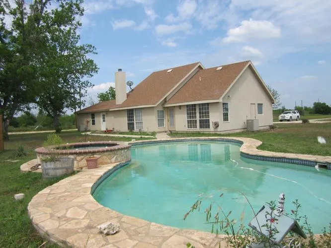 2800 sq ft: Beautiful 4/2 rock and stucco home nestled in the country yet convenience to San Antonio. Open floor plan with the kitchen over looking living room for all the fun family events. Spiral staircase leads up to a large loft. inviting in-ground pool with attached hot tub. Escape to the country and bring your horses. 18 or more Pecan Trees to provide plenty of shade. Your vehicles will be secure in the 30x40x10 Metal barn/garage with 2 roll up doors and one side door.
