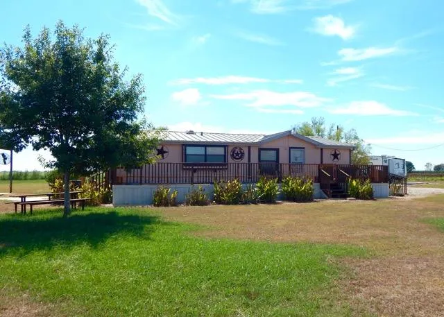 3BD/2BTH, 1,456 sq. ft., manufactured home on 4.92 unrestricted acres kept in immaculate condition. This open home has a metal roof, a remodeled kitchen with beautiful cabinetry, living room fireplace and a split floor master bedroom. There are two decks running the length of the homeone on the front and a covered one in back. Peaceful property is fenced with a slab and electric hook-up for an RV as well as a covered patio slab for entertaining.