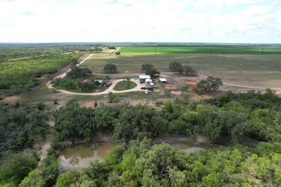 414.146 acres, more or less. 1770 CR 512, DHanis, Texas 78850. Property is located approximately 12 miles SW of Hondo or 3.5 miles SW of Dhanis at the corner of CR 520 (Squirrel Creek Road) and CR 512. All in Medina County, Texas. Cash to Seller and/or third-party financing. 414.146 acres, more or less, out of A#1538, J. Nester, S#66, 214.04 acres; A#1538, J. Nester, S#66, 199.106 acres; and A#1538, J. Nester, S#66, 1.0 acres. DHanis ISD. Property is under Agricultural Use Exemption. 2023 taxes were approximately $2,145.48. (MCAD) Any and all mineral and executive rights owned will be conveyed. Seller is believed to own 100% of mineral and executive rights on the 214.04 acre tract and 50% mineral and royalty and 50% executive rights on the 200.106 acre tract. To be more fully determined at time of new title commitment. There are two West Medina Water meters that service the ranch. One water meter is located on CR 520 that provides water to one trough and the other meter is located on CR 512 that provides water to the headquarters and one trough. There are also two earthen tanks with potential to be enlarged as well as a wet weather slough. There is electricity to the headquarters including the barn, tack room and foremans cabin. Medina Electric Cooperative is the electric provider. There is a Medina Electric Cooperative easement and Central Power and Light easement along CR 512. The terrain is flat to gently rolling with elevations ranging from 950 to 1020. There is good bottom land with a seasonal slough and flintrock hills with good views overlooking Dhanis. The grasses are native to the area and there is approximately 100 acres in tillable dryland that had been planted in Tifton 85 and Klein grass. Vegetation consists of majestic Live Oak, Mesquite, Elm and Persimmon with browse consisting of Guajillo, Blackbrush, Twisted Acacia and others native to the area. Native game includes whitetail deer, turkey, quail, whitewing dove and hogs. There is a 750 sq. ft. (MCAD) Foremans cabin with a new metal roof, Dhanis brick exterior, and has a concrete slab. The cabin has a kitchen with gas stove, window unit (AC/heat), bathroom with shower, small living area, water heater and propane tank. There is a very nice 30x40 metal barn with one large roll-up door and one walk-thru door on a concrete slab built in 2020. This barn has electricity, water, restroom, water heater, washer/dryer connection, double stainless steel sink and storage shelving. There is also 50-amp hookups for horse trailer or RV on either side of the barn with a lean-to cover on both sides. In addition, there is a 20x30 covered slab with a tack-room (w/ electricity). Behind the barn area is a great set of pipe cattle pens with chute and watering stalls. Also at the headquarters is an old 1930s Sears and Roebuck home on pier and beam with a brick basement. Although the home is not livable, it could be a beautiful remodel project with the floors and walls having good wood and still in good shape.