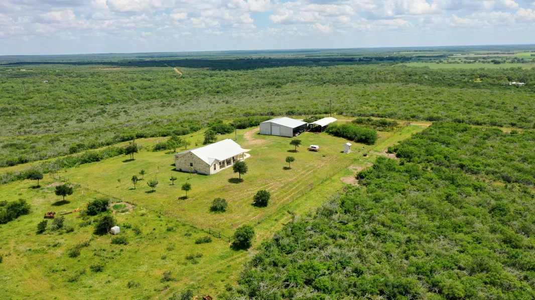 Other improvements on the ranch include a metal barn with concrete floors, living quarters, and two large rollup doors. The water well supplies water to the house, barn, and water troughs throughout the ranch.