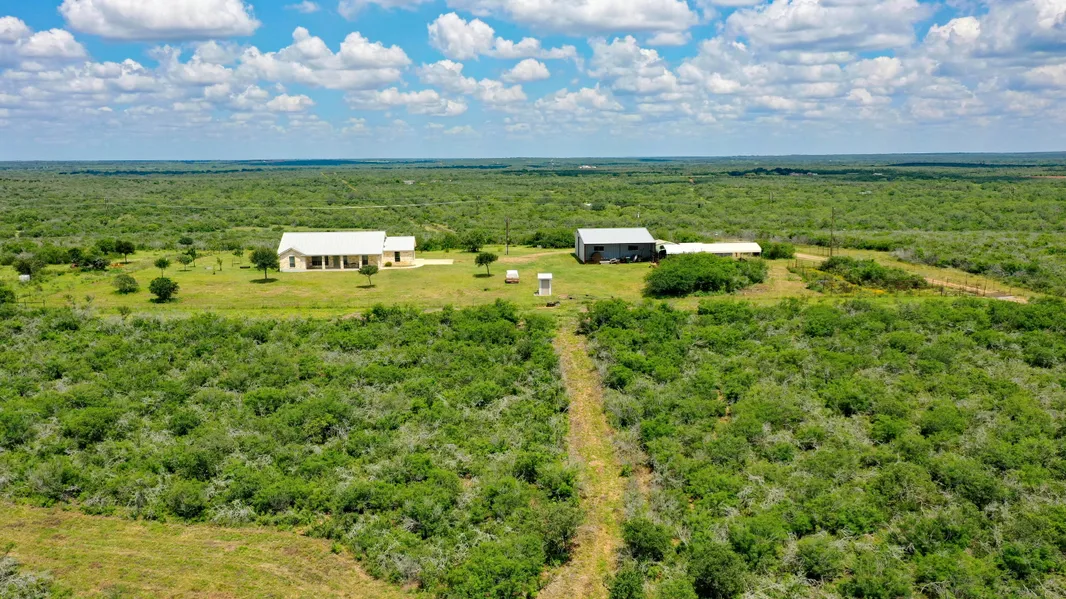 Other improvements on the ranch include a metal barn with concrete floors, living quarters, and two large rollup doors. The water well supplies water to the house, barn, and water troughs throughout the ranch.