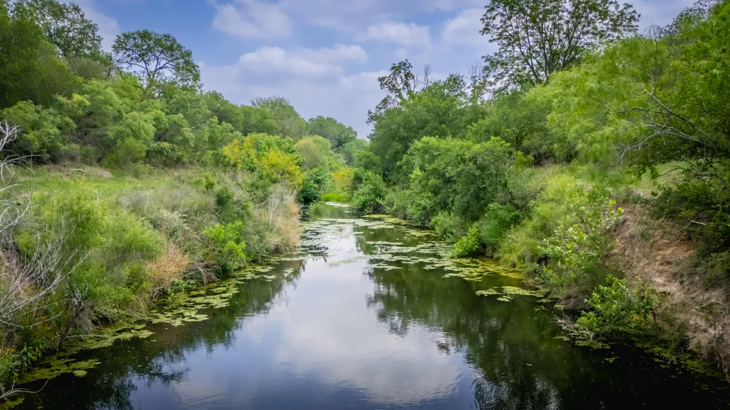 Hondo Creek flows across the ranch for 1.4 miles, providing year-round live water. Bass, catfish, gar, buffalo fish, and perch in Hondo Creek provide for good fishing. Brier Branch Creek adds another 1.2 miles of seasonal flow. Two electric water wells drawing from the Carrizo-Wilcox Aquifer and the Leona Gravel Formation provide water for troughs, a pond, and the headquarters. There are also several other ponds providing water to livestock and wildlife alike.