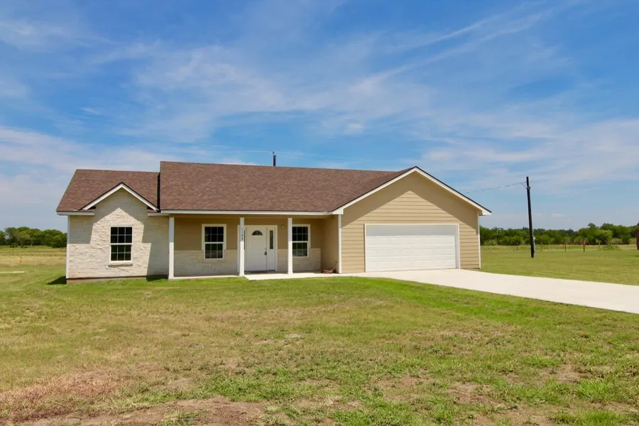 Beautiful 3BD/2BTH, 1,500 sq. ft. NEW CONSTRUCTION home on 1.5 acres featuring open floor plan, wood grain ceramic tile floors throughout living areas, high ceilings, breakfast bar, granite countertops throughout, stainless appliances, split master suite and large utility room with tons of pantry space. Large 2 car garage offers parking plus plenty of storage. Enjoy peaceful country setting from either the covered front porch or back patio. Move-In Ready and WAITING FOR YOU!