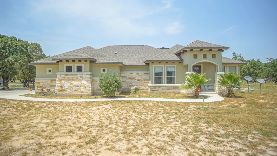 THIS ONE IS A MUST SEE -Stunning 1 storey ranch style custom home sat on a level 1.5 acre lot with mature trees. This 3 bed 2 full bath beauty has granite and tile throughout & a separate study. Lovely floor to ceiling stone fireplace in living area with peaceful views out to the rear. With an Island & Breakfast Bar the custom solid cabinets in the kitchen are complimented by granite & SS Appliances. Easy access to I35 but with all the benefits of country living! DON'T MISS OUT BOOK YOUR SHOWING TODAY