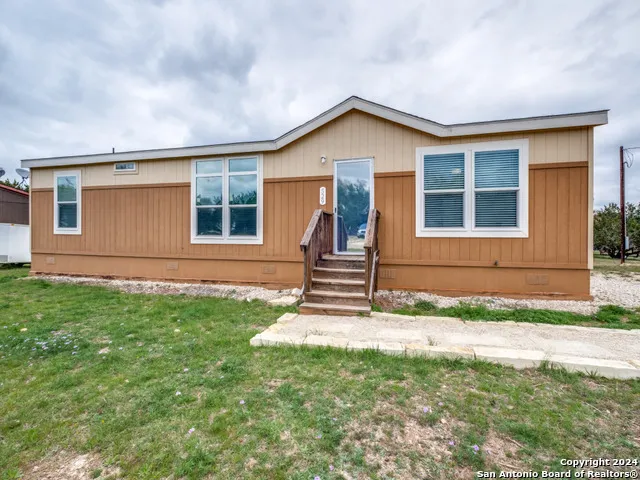 HOLIDAY VILLAGE - 3 bedroom, 2 bath 1664 sqft large home ready for your growing family! This gated community is all about family with small HOA dues but offers BIG benefits like swimming pool, putt putt, volleyball, basket ball, fishing pier & boat ramp with access to MEDINA LAKE. (not in flood zone) This gated communithy with guarded entry generates a sence of peace for your family & personal property. Wheather as a residential, recreational, investment or winter/summer living this community is private, secluded protected. The kitchen is well appointed with plenty of cooking space, cabinetry, breakfast bar, island and dinning room. Large bedrooms with plenty of space. split floor plan provides the master suite ample space & privacy! RV hook-up with 50 AMP breaker for your visitors! Come stay or play in the beautiful Texas Hill Country! Just get here!