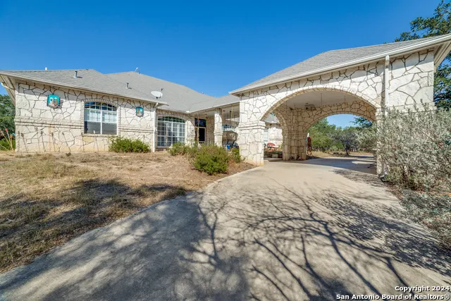 4 ACRES FULLY FENCED!!! Country living, close in! Come see this gorgeous, fully fenced, oak treed property with seasonal pond, huge enclosed patio, separate shop/garage and covered pool, on 4 acres today. This exceptional home offers a rare combination of privacy, space, and versatile living arrangements. Whether you're entertaining in the large outdoor areas or enjoying quiet moments by the pond, this property offers something for everyone. The single story, stone exterior home features a spacious and functional layout perfect for family living with 4 bedrooms (split), 4 full baths, study, huge kitchen, open living and dining areas, and a private Mother-In-Law Suite which is ideal for guests or extended family, this private suite includes its own full kitchen, bathroom, living room, providing ultimate convenience and comfort. The spacious 3-car garage is a flexible space that is currently utilized as a a game room but could be easily converted back to a traditional garage if desired. In addition there is a detached garage/workshop, perfect for hobbyists, storing extra vehicles, or working on projects. Property has fenced dog run, tree house, and peacocks are currently seen on the property. Current owner's are downsizing; this is your opportunity to make this exceptional home with rare combination of privacy, space, and versatile living arrangements yours! Seller's are willing to let some game tables convey. Don't miss out on this must-see, beautifully priced property. Schedule a tour today! NOTE: Security cameras and video recorder will not convey,