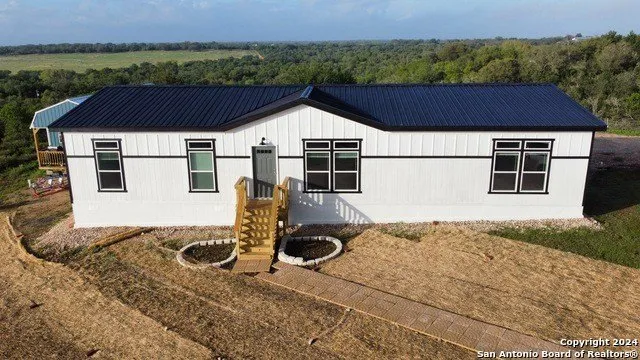THIS 2024 HOME QUALIFIES for FHA, VA and USDA for NO DOWN PAYMENT!... Here's a rare opportunity to enjoy country living with hilltop views and still close to San Antonio! Come and see this gorgeous four bedroom two bath manufactured home located outside of Castroville city limits. This 1984 square-foot beauty sits on a wooded 5 acre hilltop where you can enjoy privacy, sunrises, sunsets, and stars! There is two additional buildings one is a cabin with utilities 2 bed and 1 bath. the other is spray foamed and has a mini-split AC. And don't forget the 4 Car Garage!