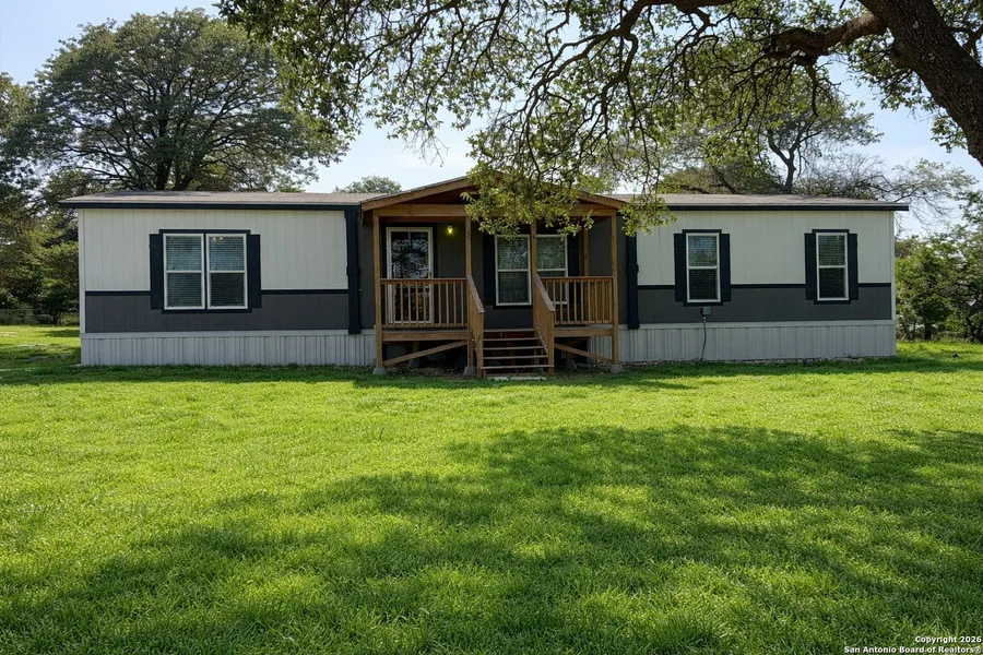 Welcome to your modern haven in Lytle TX -this manufactured home sits on a generous 0.947 acre lot in the Twin Lake Ranch Estates, offering both space and serenity. Upon entry, you'll be greeted by a spacious living area ideal for entertaining guests or creating a cozy retreat. This home has an open-concept island kitchen and ample room for family gatherings. This layout features three comfortable bedrooms and two full bathrooms. Primary bath offer a garden tub and a separate shower. Second living area provides a cozy electric fire place perfect for move nights.