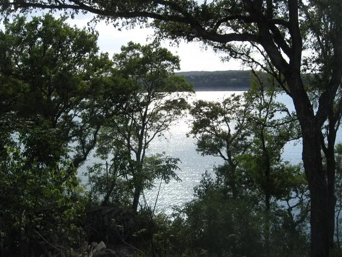 Charming home on 2 lots with .34 acres has 100 feet of waterfront. Fabulous views, deep water, wonderful breezes. 2/1.5, open floor plan, cellar, well house, detached garage; plenty more parking. Stained glass accent windows each side of fireplace. Beautiful wood floors. Large rooms. Easy commute to San Antonio. Close to restaurants, recreation and community activities.