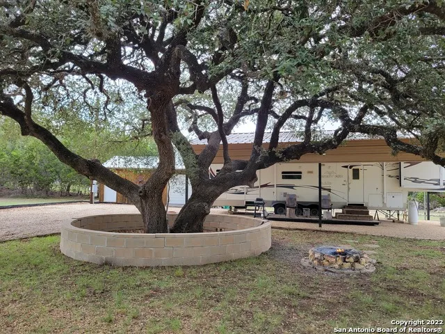 The perfect peaceful getaway spot is priced to sell fast! Welcome to Holiday Villages of Medina. These four lots total 1.1 acres and have been beautifully manicured to take advantage of the landscape with an awesome oak tree right in front. It includes a large circle driveway, a 14x26 shop with electricity, a 26x40 RV cover, and a 2007 38.5 feet long fifth wheel Camper trailer. This trailer includes one bedroom, a kitchen and living area, and separate garage/toy hauler area. There is also a second electrical RV plug in by the shop. The neighborhood amenities include a gated entrance, 6000 sf. clubhouse, Swimming Pool, Hot Tub, several picnic areas, waterfront park area, boat launch and fishing pier. There are even condo and RV spots available for your guests to rent when they come visit. You won't find a better deal out there!