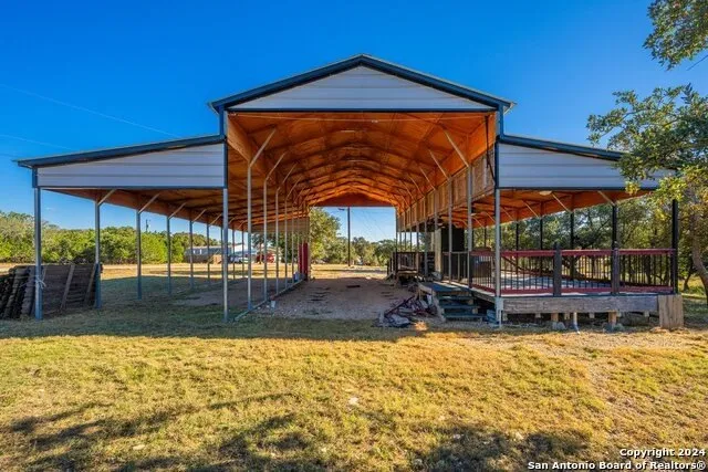 Welcome to your 2.86-acre Hill Country retreat! This rare gem offers peace, privacy, and panoramic scenery. A spacious 12x45-ft covered, fenced, and gated deck provides the perfect spot to savor your morning coffee while songbirds serenade you and Whitetail and Axis deer roam. All utilities are in place, and the impressive 2,430 sq. ft. parking canopy is move-in ready. Nestled in the exclusive Holiday Villages, a gated community with 24/7 security, you'll enjoy resort-style amenities including a clubhouse, swimming pool, hot tub, private boat ramp with lake access (pray for rain) , fishing pier, playground, and BBQ area. Conveniently located less than 20 minutes from downtown Bandera, with an easy commute to Hondo, Boerne, Kerrville, or San Antonio, this property combines natural beauty with unparalleled convenience. Your Hill Country build site awaits! Property is protected by G...