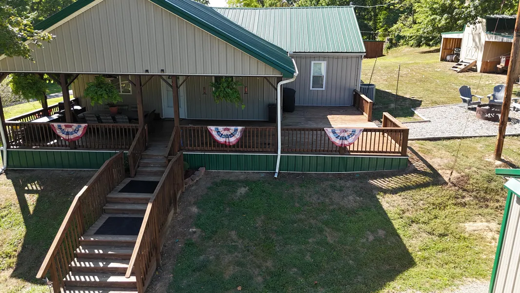 This charming home has been completely remodeled inside and out in 2017. The kitchen, dining room and living room are all open with 3 bedrooms and 2 baths. The outside features an inviting oversized front porch great for entertaining that flows out to the sitting area with cozy fire pit, above ground pool, 32x32 garage, storage shed with 2 lean to's, also a 2 bedroom cabin, 1 bath, living room, and kitchen all this on approximately 10.91 acres.