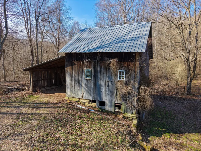 A dirt driveway, lined with fruit trees, guides you to a 20th-century bank barn that has been converted into a camping site. The current owner occasionally stayed overnight between hunts, though this structure is not a finished cabin nor weatherproofed. Instead, it offers a rustic, old-fashioned camping experiencemore refined than tent camping but not a fully enclosed shelter.