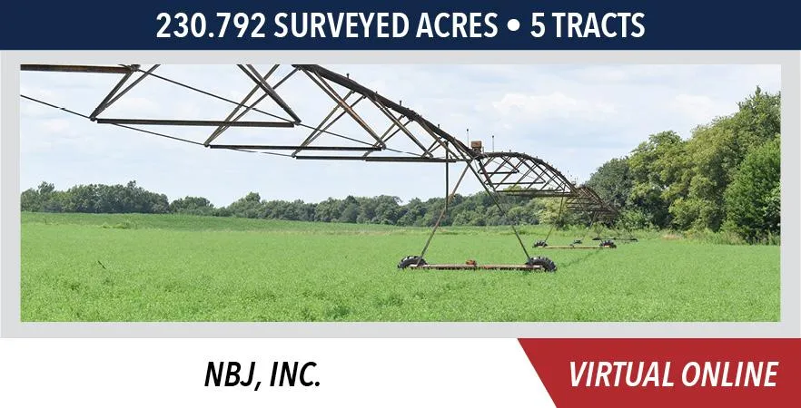 The property contains a total of 230.792 Surveyed Acres and will be sold in 5-tracts. The tracts are mostly all- tillable land (2 with center pivot irrigation units) and one tract is wooded and offers excellent hunting and o...