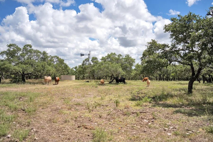 Improvements: Follow the winding paved driveway from the automated gated ranch entry to the headquarters area. There, you will find the 2 bed /2 bath ranch home which fits perfectly within the hill country landscape. Stone and siding exterior with expansive covered porches, metal roof, beamed and vaulted ceilings, and a wood burning fireplace create a perfect gathering place for friends and family. The accompanying 3 bed / 2 bath guest house also has large covered porches and is only 5 years old. Also located at the compound is a large insulated metal building / garage with lean-to for parking, which contains two bunk room apartments, each with a half bath. Finally, another large metal building will accommodate an RV and provides plenty of storage for feed, ATVs, tools, and items necessary to run the ranch. There are two great water wells, troughs, cattle pens, livestock sheds, and excellent perimeter fencing.