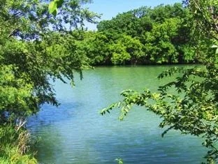 Terrain. The land slopes gradually from the road to the San Saba River. There is a small planted pecan orchard, scattered large oaks, and native brush. An interesting escarpment with small caves runs above the river bottom, which has large pecan and oak trees.