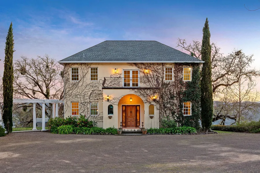 Perched above Anderson Valley in the verdant eastern hills lies a truly private and unique estate. The main residence is rich with old world charm as well as many modern accents. The main level features high ceilings and an open floor plan with French doors revealing a large outdoor patio showcasing grand valley views and shaded by a wisteria laden pergola. Both upstairs bedrooms feature equally stunning views, with a private balcony off of the master. Adjacent to the main residence is the detached garage with plenty of room for multiple vehicles and storage. An interior stairway from the garage leads to the contemporary 1 bedroom, 1 bath flat above with private balcony. The land is comprised of gently sloped oak savanah, roughly 30 acres of plantable land, a pond and a versatile internal road network for recreation. The beauty, privacy and solitude of this amazing Anderson Valley Estate are unparalleled and when you pull into the cypress lined driveway, you'll know your home.
