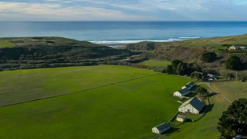 The property has great access off of Highway 1, it borders both sides of the highway with a majority of the ranch on the west side. The main house sits above the farm field with views of Alder Creek, Pacific ocean, and the sheep pasture. The caretaker home is located by the pasture and barns. The ocean bluff has incredible views and a road that takes you down to your very own beach. The current owners have leased out the road and beach to a local horse back riding business that brings clients from all over the world to experience this beautiful coast line.