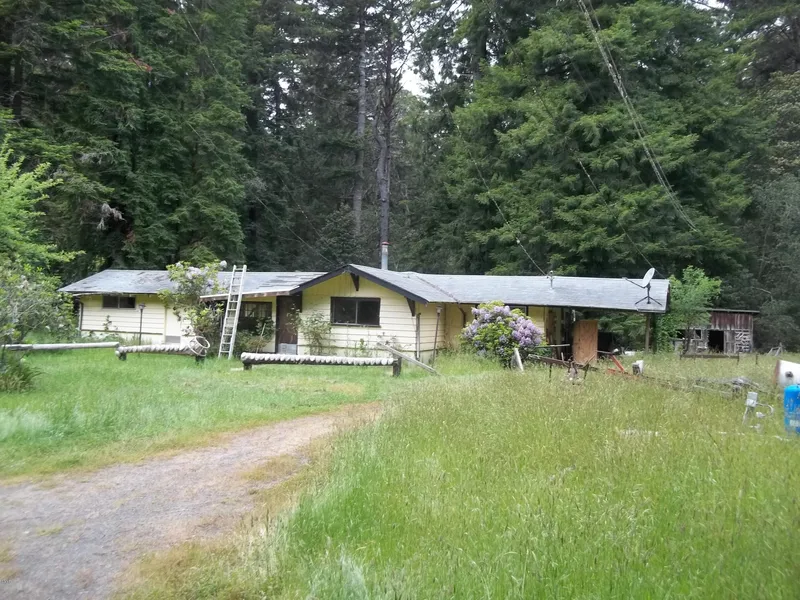 End of road privacy for this almost three acres of meadow and redwoods. Borders Jackson State Forest to the South. 4 bedroom 2 bath home on lovely private 2.97 acres, Great horse property with access to trials. Home is in need of some repair or upgrades. Many out buildings on property. Has a large shop building with some additional space used by owner. Lots of Redwoods on this parcel.