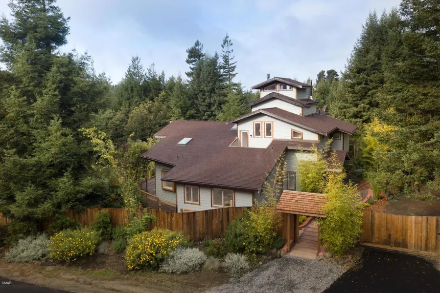 Stunning new 2500 sq.ft custom craftsman home offered by an award winning designer builder. Main house has open floor plan with vaulted redwood ceilings, hardwood floors, window seats, spacious surrounding decks, overlooking pond and gardens. Surrounding picture windows bathe this home with natural light. An upstairs suite has decks, sweeping forested views to the pacific with kitchen, bath and spacious accommodations for guests, art and family. This private 2.5 plus acres includes a small cabin, underground utilities, ample parking and RV hook ups. This is your opportunity to own a rare Mendocino gem.