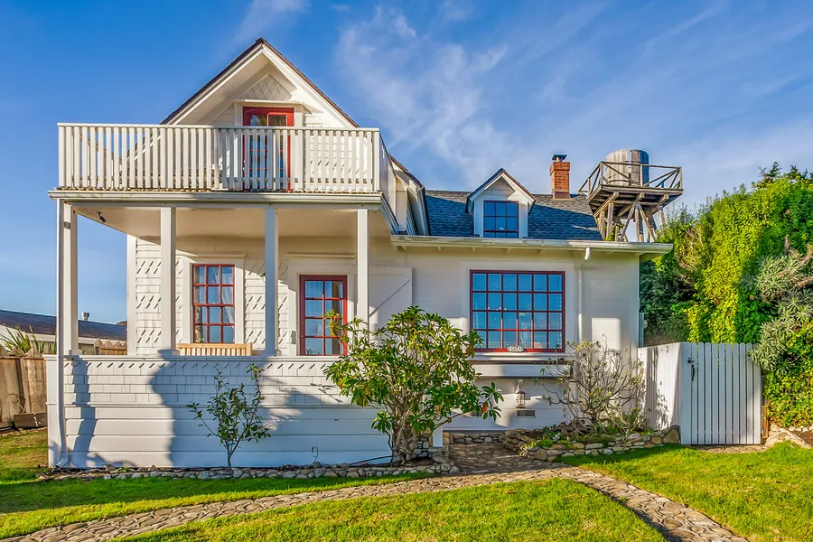 With its deep porch, clapboard and shingle siding, bead board wainscoting and wide plank hardwood floors, this Mendocino village historic home looks like it was torn right from the pages of Coastal Living. The exposed rafters and divided light windows frame dramatic, unobstructed views across protected Headlands State Park to the craggy cliffs and crashing surf beyond. Woven throughout the property is beautiful river rock. From the exterior walkways that wrap around to the back garden retreat, each stone was hand-selected from a nearby beach and individually set by a master stonemason. Also included is an artist/writer's studio in the back gardens complete with a stone floor and picture window covered by operable barn doors. The 2016 renovation addressed and updated the electrical, mechanicals, appliances, insulation and added interior improvements throughout which included a new kitchen, a new full bath, interior paint and refinished floors. A new roof added 2020.