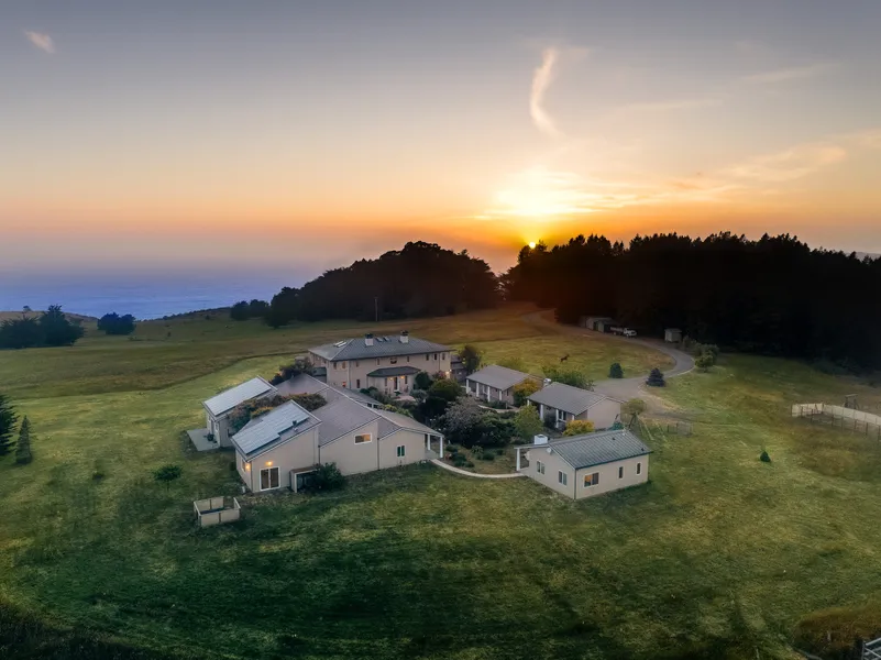 A rare opportunity to own a breathtaking stretch of land along California's northern coastline, near the coveted Sea Ranch. This extraordinary offering spans three parcels, creating a coastal retreat like no other. With panoramic ocean views, pristine forests, and abundant wildlife, the landscape is truly spectacular. Perched on a flat knoll with sweeping Pacific views, the estate includes a main house, guest house, two expansive studios, a detached garage, and a storage building with a kilnoffering endless possibilities for living, creating, or retreating in serenity. Built for durability and timeless appeal, all structures feature stucco exteriors and metal roofs. The home is engineered with double-layered cement blocks reinforced with rebar, ensuring superior insulation and stability. A flagstone courtyard with a tranquil pond enhances the coastal retreat feel. Just moments from Schooner Gulch Beach and the famed Bowling Ball Beach, the location is unbeatable. Spanning 84+ acres, with extensive fencing, the estate is ideal for equestrian pursuits, featuring an arena, holding pen, vet stall, and corral. Zoned for residential, vacation rental, livestock, and agricultural use, this private sanctuary is just three hours north of San Francisco.