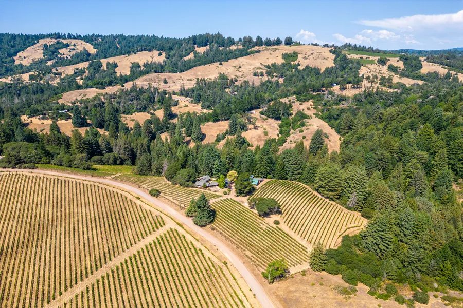 Nestled between lush forests & rolling deep end vineyards, Romani Vineyards can be found. A complete wine country compound, this offering encompasses 21 +/- acres of gentle land, with 5 acres planted to a combination of award winning Pinot Noir & Pinot Gris vines. Resting slightly above the valley floor, the improved area of the property captures incredible layered views of rolling vineyards & distant redwood forests. Two separate dwellings combine to create an ideal compound. The main residence includes a comfortable living area with open concept kitchen. Off the main living area, is a secondary living area warmed by a wood stove with sleeping loft above. A dining area, flooded with natural light & rich with views, connects the primary suite. An indoor pool allows for four season swimming & opens to an enchanting landscape, with pathways, bocce court & a redwood forest backdrop. Adjacent the main home is the on-site winery building with studio apartment above. The lower level was designed with intention, taking advantage of gravity & geothermal cooling to enhance the winemaking process. A tasting area & storage area/barrel room round out the space. The balance of the land is forested, cascading towards a creek & pond. Romani Vineyards is a perfect expression of Anderson Valley.