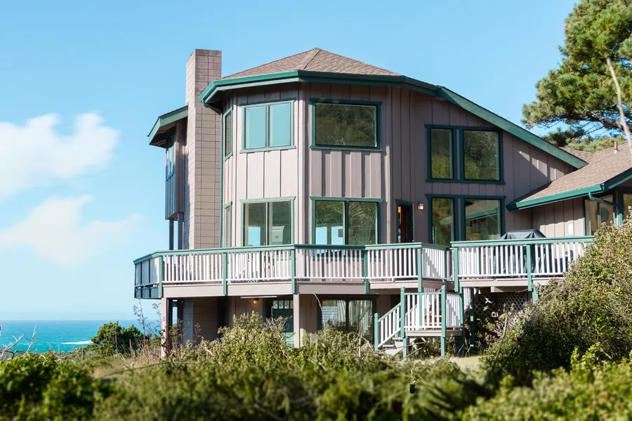 Be prepared to be amazed by this 2,700 square-foot home in Little River, a turn-key vacation rental. Enter into the great room design that makes all amenities within easy reach from the fully-stocked kitchen with an ocean-view sink to the resplendent dining area with more, breath-taking views of the same thrilling body of water. The two-story vaulted ceilings in the main living area culminate with fabulous, knotty-pine ceilings and robust, open beams. A masterful, stone fireplace brings attention and warmth to the heart of this room. The third story loft and game room provide the ultimate in whale watching and oceanic observations. A nearby wet bar comes with abundant storage space and the perfect assistance for home entertainment. The large, master bedrooms provides glorious opportunities to wake to the splendors of the crashing blue and white water with wall-to-wall windows and deck access. Outside are expansive decks with a hot tub that provide generous opportunities for sunset views, and star gazing. A covered breezeway leads to the detached, two-car garage. There is also the most charming, A-Frame studio space accessible by a wooden bridge crossing a small, babbling creek. Comes with deeded ocean access. In all, it is the blue and white waters of the Pacific beyond that is truly the focal point of this home.