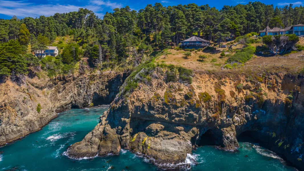 Breathtaking Ocean Front property.Two Oceanfront parcels sold as one spectacular site in Little River, California. The oceanfront parcel has sweeping views of the ocean, the coastline, sea caves and a cove below. The adjacent parcel has ocean vistas, beautiful mature trees, lush vegetation and flora. There are two existing partial structures for recreating a house, guest house , studio scenarios.Private and secluded. 10 minutes from village.