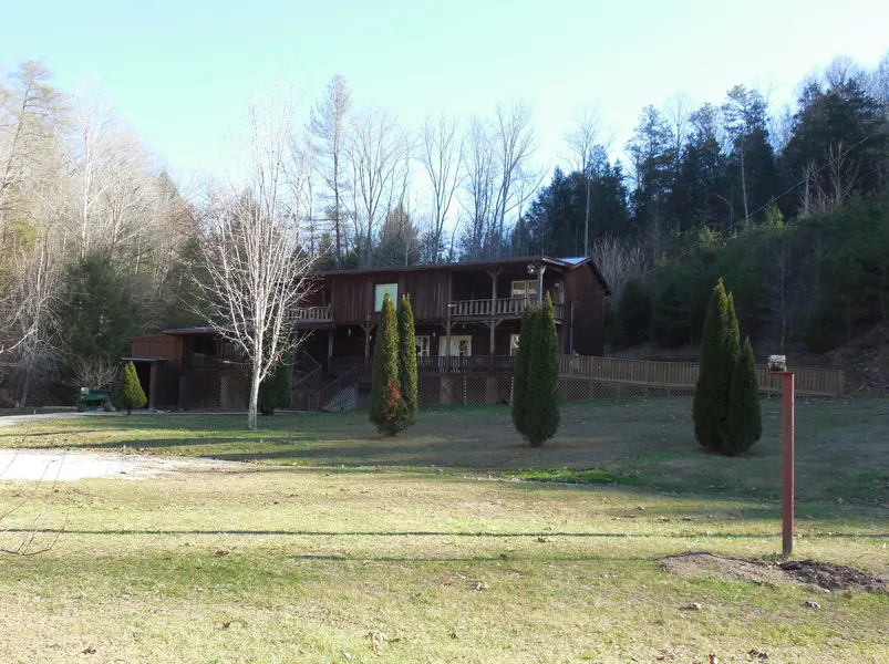 Price just reduced on this gorgeous, large rustic 2-story home with 4 bedrooms, 3 baths on 20 acres /-, in the Daniel Boone National Forest and alongside the beautiful and well known (and nearly 290 miles long) Sheltowee Trace National Recreation Trail. Enjoy the great location only 7.5 miles from Longbow Marina at Cave Run Lake with privacy and views from your covered porches & balcony. One bedroom on the main, and 3 bedrooms upstairs. Two bedrooms upstairs have access to the outside balcony. Granite counters in the bathrooms. Equipped with garages, a barn, a storm shelter, and a creek running through this property, it is ready for you to move in and enjoy! Offers both well and city water- you get to decide! Electric heat can switch over to generator. Some accessibility features have been added to this property including ramps and a stair lift. For additional space and privacy, you can...