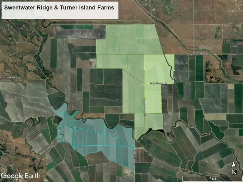 Located along the San Joaquin River in Merced County within the Turner Island Water District (TIWD) sphere of influence (water is delivered to the ranch directly via its own water supply, not from TIWD). The property forms 100% of the Turner Island Water District GSA-2, located in the Delta Mendota Subbasin and a party to the Exchange Contractors Water Authority GSP.