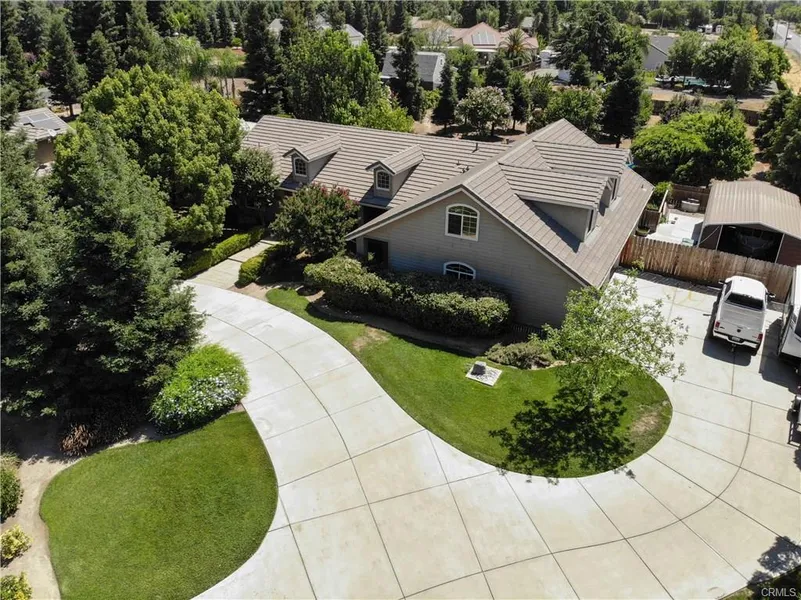 A little extra space! This beautiful 4 bedroom 3 bath McSwain home sits at the end of a cul-de-sac on over a full acre lot. The sprawling fully landscaped front yard leads you to the wide and welcoming stamped concrete walkway and covered front porch. The large semi circle driveway has ample parking for trailers, RV or multiple guests. Once inside the inviting open floor plan draws you to an open kitchen and great room. The great room and master bedroom have been updated with farm style accents of fresh paint, refinished cabinets and plank flooring with a distressed wood veneer. The master bedroom features a large his & hers walk-in closet and the master bath features a jetted spa bathtub. One bay of the three car garage has been enclosed, with flooring and paint creating an excellent indoor hobby room or home fitness area. The secluded bonus room located on a second level is an ideal space for a private office or entertainment room. The vast and landscaped backyard offers a large covered back patio, several mature fruit trees, a shaded gazebo for outdoor entertaining and a large detached shop. This home must be seen to be fully appreciated!