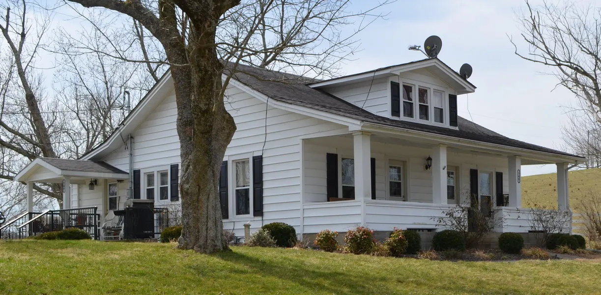 This nice farm is located just about 10 minutes west of Harrodsburg. The land is mostly clear and has several acres of fertile creek bottom land. The older home has several updates including a heat pump system and thermopane windows. The home includes an eat-in kitchen, den, bedroom, bath, and large living room with 2 fireplaces on the first floor. The upstairs has 2 bedrooms and a bonus room. There is also a partial unfinished basement. Other buildings include a cattle barn, 2 car garage, and a really nice pool house. A very nice property for someone looking for good country living.