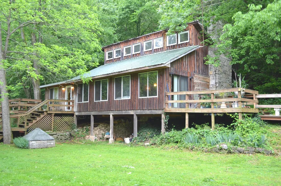 Nestled among the palisades of the Kentucky River, this unique property offers privacy and tranquility. The setting includes approximately 8.5 acres of woodlands bordering the river. The home is constructed of hand-hewn yellow poplar logs salvaged from a dismantled log house from Marion County KY, and completed with western cedar and hemlock. The interior is mostly exposed log and wood with center red pine floors. Rustic yet complimented by a modern heat pump system, Lake Village water system, and KU electric. The home contains a nice great room with open ceiling and stone fireplace with wood burning stove, 2 bedrooms, bath, and dining/sunroom on the first floor. There is a loft area ideal for another bedroom or office/study room. This property is one of a kind and will make someone a wonderful retreat!