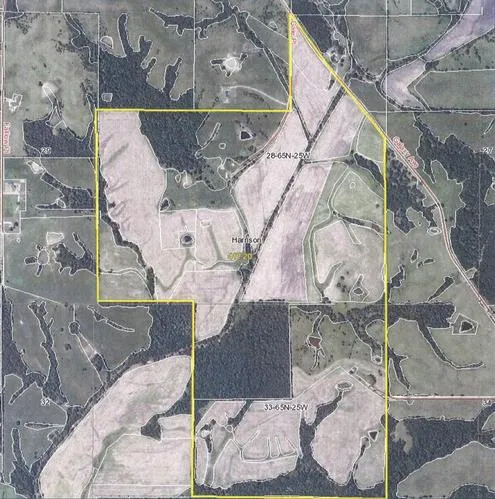 This 417-acre farm has it all. There are 270 acres of row crop that includes both bottom and hill ground combined, with an annual income of $27,000.00. There are around 60 acres of grass for hay or pasture, with the balance being timber and timbered draws. This farm has a creek running through it and seven ponds. Also included is a homestead that consists of a two-bedroom home with a combination kitchen/dining/living room and one bath on the main level. The main level has been gutted and is in need of repair to make it livable. However, the house seems to be very solid. It would make an excellent hunting cabin or weekend getaway. Also, included is a 24x24 open front building with attached 40x16 open front building. There are three outside hydrants and a 44x28 machine shed. The property has rural water and electricity. This farm is very secluded and should offer excellent hunting.