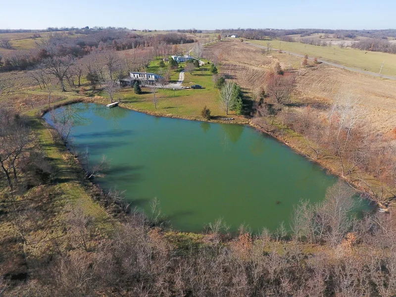 Similar to stars in the night sky, some properties simply shine brighter than the others. This 180 acre gem, in the heart of Mercer County Missouri, sets the standard by which all other properties will be judged. For the discriminating buyer looking for a roomy, well appointed lodge, with world class deer & turkey hunting, there is nothing else in the market like this farm. The cornerstone of this incredible property is a 3,100 sq/ft earth contact home, situated on a hill overlooking a 2.5 acre stocked pond. With 5 bedrooms and 3 full bathrooms, there is plenty of room for house guests, complete with all of the amenities & creature comforts you would expect from a custom home. The one of a kind hand made hedge-post staircase, with rebar fencing spindles, leads to an upper level balcony the overlooks the open lower living & kitchen areas. The first floor master suite is massive and featur...