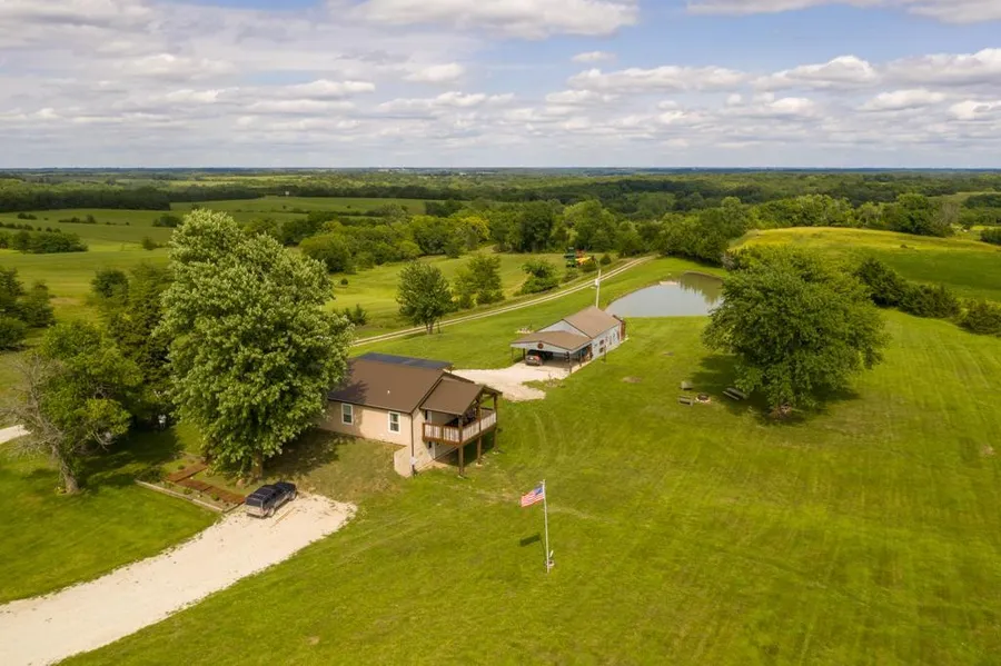 Nestled on 10 +/- acres in Mercer County, Missouri sits one of the nicest country homes you will find anywhere. The sellers have poured their heart and soul into updating the home and it immediately shows. This ranch style home, with a finished walk-out basement, boasts of 4,000 square feet of living space with 4 bedrooms and 3 full baths. The main level has 3 bedrooms, which includes the master suite. The large master bath features a tiled floor, tub/shower combo, and dual sinks. The freshly updated kitchen is beautiful. The laminate wood flooring provides a rustic country charm while the white cabinetry and stainless appliances add a modern flair. The open living concept between the kitchen, dining, and living room lends itself to family gatherings and entertaining. The living room is large and the gas fireplace keeps it warm and inviting. There is a laundry utility area on both levels of the home for your convenience. Downstairs there is a huge great room and wet bar. The sellers added a pellet stove here and it will keep the entire lower level warm in even the coldest months of winter. Simply put, this area was built to host and entertain. There is a massive fourth bedroom on the lower level as well. And to top it off, there is a full bathroom with the largest walk-in shower I’ve ever seen. A new steel roof was installed this summer for years of maintenance-free protection. There is also a very large covered deck/patio area that is perfect for grilling, outdoor dining, and relaxing. The one-acre, stocked pond puts an exclamation point on the view from the deck.