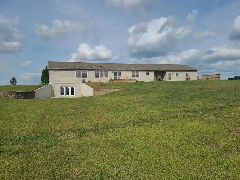Home and acreage in North Missouri, Mercer Missouri. This is true country living. As you pull in the driveway the home sets towards the back of the property giving you plenty of distance from the hard surface road. As you pull up, you enter the oversized garage, 30x30 with a concrete approach for parking. The home and garage are connected by an enclosed breezeway with tile floor allowing the dirty to be kept out of the house. Walking into the home you enter the utility room, with the washer and dryer on the left, and a full bathroom on the right with vinyl flooring. Straight ahead a family room with 3 of the bedrooms to the right and another full size bathroom between two of the bedrooms. Moving straight ahead of the family room is the Kitchen with sink in the island, and a great view out the back of the home. Strait ahead of that is the dining room and master suite with another living room at the main entrance of the home. Laminate flooring in the main part of the home and carpet in the bedrooms. The home is pre-built and is insured as a modular not as a manufactured home. It sits on a full 9 basement that is unfinished adding to the potential finished square footage. The home sets on approx. 4 acres.