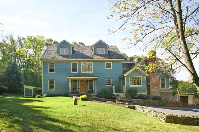 Near the historic Strimples Mill, this wonderful country home sits high on a rolling hill in Delaware Township. A winding stream edges the road to the driveway where handsome stone walls guide your approach and define the gardens. This impressive ten room Salt Box was custom built in 2005 with great care by one of the areas most well-respected craftsmen. The striking living room, with gorgeous stone fireplace, beamed ceilings and rich wood floors is enhanced by stone accent walls and a bank of built-in cupboards. The expansive chefs kitchen, with huge center island, professional grade appliances and shining wood floors is made more dramatic by a beamed, vaulted ceiling. An adjoining sunroom is perfect for a family breakfast, casual dining or the Sunday paper. With room for chaises and table, a private third floor balcony offers a birds eye view of treetops and countryside. The love...