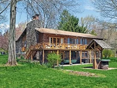 Chimney Lodge Log Cabin House on 22+/- Acres