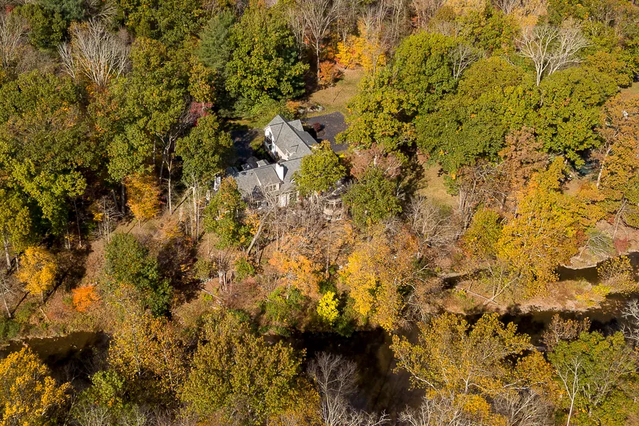 Completely immerse yourself in the sights and sounds of nature at this custom-built home overlooking the rippling water of Stony Brook. The setting is so tranquil and there is much space to enjoy, both outdoors and in, that Manhattan seems worlds away, rather than just 56 miles. Beyond the 3.22-acre property, trails for biking, hiking and even horseback riding are so plentiful you could explore them for years and never take the same path twice. Back at the contemporary craftsman style home, there's a well-planned space for every leisurely pursuit. Whip up gourmet meals in the central kitchen with double islands and a 48-inch Wolf range. Then head down to the Surround Sound theater to binge-watch your favorite flicks or get in a workout in the home gym. Moreover, each room is finely finished with natural materials that complement the setting and lined with French doors and transom-topped windows that welcome in the view. Past an office with a hidden wet bar, the first floor main suite offers a spa-like bath and separate dressing rooms. A second stunning suite above has access to the observatory. There is also a private entry guest suite perfect for an au pair or private tutor. All 5 bedrooms have private baths giving everyone the privacy and space they crave. Owner is NJ Licensed Real Estate Agent.