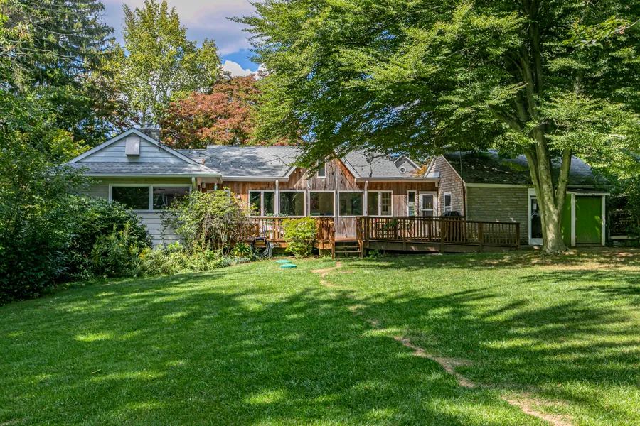 The perfect blend of modern comfort and on-trend design, this cute-as-a-button Ranch is full of pleasant surprises. High vaulted ceilings and new hickory floors in the living and dining rooms, sun-filled skylights, window walls, and pops of color throughout make this home a pleasure to live in, entertain in, and simply enjoy. A built-in office alcove is functional and charming. The main bedroom was entirely revamped to create a splendid retreat with a fireplace, a new luxury bathroom, and a walk-in closet customized with built-in drawers and shelves. There are two more bedrooms, so everyone gets a space of their own. One is en suite, and the other uses an up-to-date bathroom with a pretty pocket door that complements an impressive wall of open shelving to display life’s treasures. The broad kitchen with glass cabinetry, a cleverly hidden feature that expands the usable counter space, and...