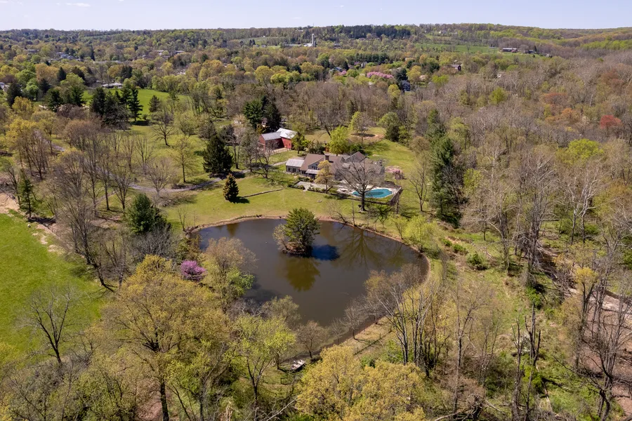 Maple Shade Farm is a scenic farmstead with a rich past dating to the mid-1700s in a setting that is pure paradise on the edge of Hopewell Borough. The views are incredible, stretching across 59 bucolic acres and towards neighboring St. Michael’s Preserve. A gated driveway rambles past an all-new lighted riding ring, five fenced pastures with a new waterline for irrigation, and a large pond. A Pebbletec pool and spa are surrounded by a Himalayan-cut stone patio with walls reclaimed and repurposed from abandoned foundations in Bucks County. The spectacular house, born from an 1850s English barn, a late-18th century wagon house, plus a stone house addition with a wine cellar, is an incredible reinvention of the past while incorporating the ultimate in creature comforts. With so many well-thought-out recent improvements, there is now a new state-of-the-art air conditioning system, new plumbing, a whole house water filtration system, and a brand new pro-style six-burner Thermador range in the high-end yet rustic kitchen that will satisfy any culinary perfectionist. Because of the traditional barn framing. conventional walls weren’t necessary creating an open-concept floorplan that will bring everyone together. The main level includes three great rooms. The first houses the living room, dining room, and a bar. The second unites the kitchen with a breakfast area and the family room, while the third is a wonderful entertaining space for the summer months with its multiple doors leading to the pool and grounds. Wide plank oak and chestnut flooring throughout the house and bluestone flooring over radiant heat add warmth and character to rooms. There is extensive use of handmade oak doors, all hung on locally designed handmade hinges and hardware, handmade lighting, plus solid oak and mahogany cabinetry throughout. A massive bedroom suite is the ultimate retreat with a fireplace, a dressing gallery with dual walk-in closets, built-in cabinetry, and a luxury bath. A second bedroom suite has a private bathroom, and across a broad loft, there are two additional bedrooms and another bathroom. A two-bay garage with a second-floor apartment and a new deck is handy for extra help, and a white oak early 19th-century garage barn can house additional vehicles. For livestock and machinery, the white oak timber barn, originally constructed in Readington, NJ, and moved in 2006 by the NJ Barn Company, contains two horse stalls, a large run-in area, a big machinery storage area, and custom lighting. This is an outstandingly presented offering that will be hard to duplicate elsewhere, whether your interest lies in horses or hobby farming or just the desire for a sprawling, private paradise to call home near Princeton. Proof of Funds required prior to scheduling and confirming appointments.
