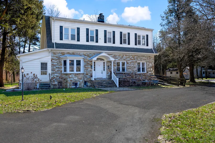 With flexible zoning and 7 acres to work with, a world of possibilities exists at this very special Robbinsville property. The existing, magnificent 5400 square foot Colonial home is completely set back from the road and immersed in trees for a totally private experience. Bear Brook runs along the edge of the property furthering the natural beauty. The house is extraordinary in both size and period charm. Ceilings rise to a height of over 12 feet and rooms are beyond expansive, especially the jaw-dropping living room through a graceful arched doorway. Large windows and ample natural light are unifying features throughout. For an ideal work-from-home experience, just step through French doors into the sunroom with its own private entrance. The kitchen is done in crisp, clean gray and white with a farmhouse sink and tall shaker-style cabinetry. Choose between two primary suites: one conveniently on the main floor or one upstairs with a fireplace, custom walk-in closets and a palatial bath with freestanding tub. Three more bedrooms, served by two baths, are also generously sized with still more upstairs space left over for a sitting area and a laundry room. A circular driveway provides plenty of guest parking and a secondary 900 square foot structure, sold as-is, stands just beyond a handy shed. Relish the secluded charm of this manor-style home and take advantage of the great Robbinsville school system or explore the possibilities for something totally different. Square footage per Robbinsville Twp tax assessor.