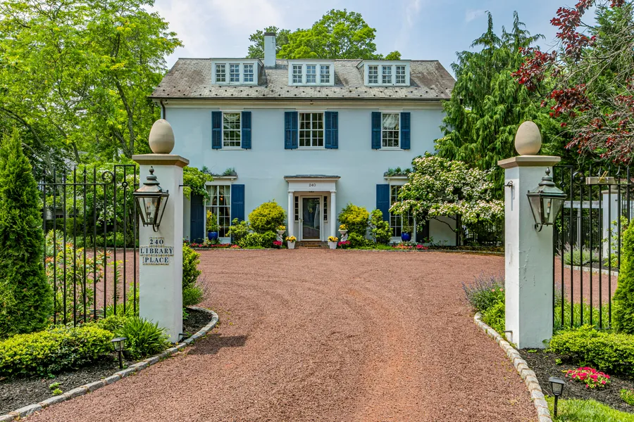 On a corner lot in the heart of the famous Western Section, a mere half-mile from bustling downtown and Princeton University's world-class campus, astonishing artistry and a fascinating history combine for a home like no other. As refined as it appears from the courtyard entry, it only gets more impressive as you continue through the array of rooms discovering storied mantelpieces, carved woodwork and imported fixtures along the way. The deep grounds also never fail to surprise and delight all who are lucky enough to spend a day relaxing by the Roman style pool or dining on the stone terrace. The lawn and formal garden have even hosted tented celebrations for hundreds with ease. The 1840 house welcomes you into the foyer, where a mural's softly colored tree branches reach toward an unusually high ceiling. The living room is large enough for a combination of seating areas or even billiards, as the current set-up shows. Pocket doors allow a view of the library's elaborately detailed woodwork while seated in the classically styled dining room. Plenty of sunshine and radiant heat keep the marble-clad family room from ever feeling chilly. New quartz countertops freshen up the crisp white kitchen with a wealth of storage around every turn. A breezeway connects the three-car garage and leads to a pool house like no other, where glass and crystal creations custom-made in Paris by the artisans of Lalique conjure a magical underwater fantasy world. Carved sea creatures whimsically watch over the gathering space served by a full kitchen, wine cellar and bathrooms worthy of Poseidon himself! Above, a playroom/gym provides plenty of space for healthy indoor recreation. The upper levels of the main house hold seven bedrooms served by five baths. The largest and airiest of those bedrooms radiate from the light-filled landing, along with an office beyond fanlight-topped pocket doors. The main suite has it all: dressing room, fireplace, marble bath, sunroom and a deck overlooking a trickling water feature and stunning trees that put on an autumnal show. This is your chance to leave your mark on one of the Western Section's finest showplaces.
