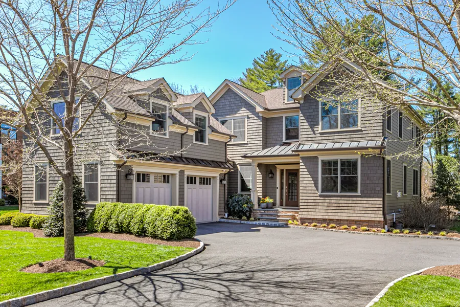 While this Riverside home was just built in 2019, it has an established presence due to its timeless curb appeal and deep backyard with a lawn that meanders through tall trees and planting beds. The airy foyer comes as a delightful surprise, giving a glimpse at the broad, open spaces spanning the back of the house. Classic molding enhances the doorways to the formal rooms, both topped with coffered ceilings. A stunning brass chandelier is the centerpiece of the dining room, while a gas fireplace beckons in the living room. A second fireplace in the family room has such grand proportions that it also visually warms up the breakfast area and the kitchen, which wows with a commercial-style fridge, Thermador double range and an expansive island topped with extra-thick quartzite. A beverage bar is great for entertaining and comes in especially handy when the nearby guest suite, totally separate atop the garage, is occupied. Should first floor accommodations be necessary, an office with direct access to a full bath is ready to serve. More flexible options exist on the finished lower level with lofty ceilings and a full bath that’s just as attractive as the others. All four upstairs bedrooms are full suites with organized walk-in closets and special features, like a tray ceiling or eye-catching geometric tile. The primary suite has the added amenities of an oversized marble shower and a slipper tub. This house exhibits premium quality construction with finely finished millwork and top-of-the-line materials everywhere, even outdoors. You’ll find the maintenance-free deck and paver patio just as flawless and inviting as the interior!
