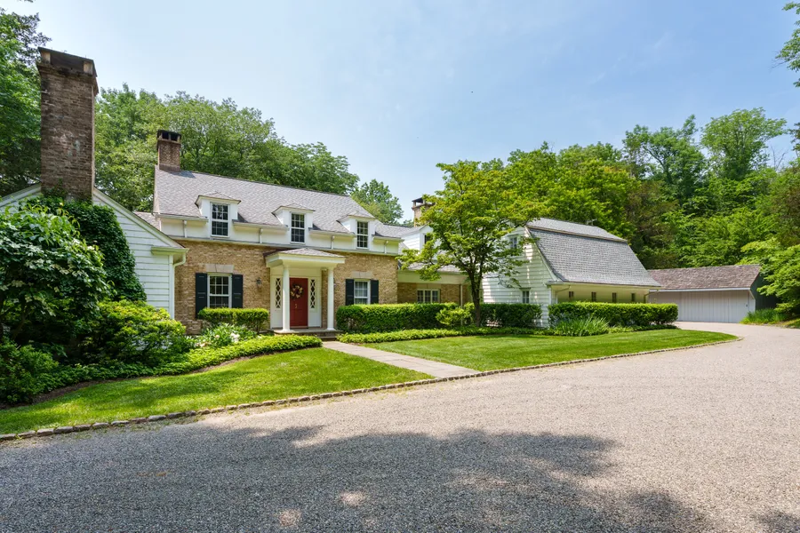 Cross the little stone bridge over a spring-fed pond and wind your way up the hill to the picture-perfect entry of this solidly built home just 3 miles from downtown Princeton, offering loads of graciously detailed space and a country estate lifestyle on 4.29 acres. A parking court and an extra detached garage let you extend an invite to all your friends for poolside fun and gatherings out on the stone terrace, where the views are absolutely idyllic. Multiple French doors open to this heavenly scene, three of them in the central great room. Schumacher wallpaper in the celebration-sized dining room is right on theme, reminding you of the setting even after sunset. A butler’s pantry with two wine fridges supplements the sunny kitchen, where terra cotta tile and a brick archway lend warm character. There’s plenty of space for a sitting area beside island seating, all surrounded by casement windows. Take your pick of primary suites: an entire first floor wing with a den, dressing room and huge bath or the upstairs corner suite with an adjacent walk-in cedar closet and expansion possibilities into the attic. Two more bedrooms and an office with built-ins, share a hall full bath and a huge third suite gives guests all the space and privacy they could want. Still more finished space exists on the lower level, including a family room with one of the home’s three fireplaces and a rec room served by a half-bath. Through a workshop and pool storage room, you’ll discover a greenhouse, where you can exercise your green thumb within sight of the pool. A newer roof and whole-house generator keep this house dry and functional no matter the weather! This special property is around the bend from Pretty Brook Racquet Club and close to several of the area’s top schools, public and private.